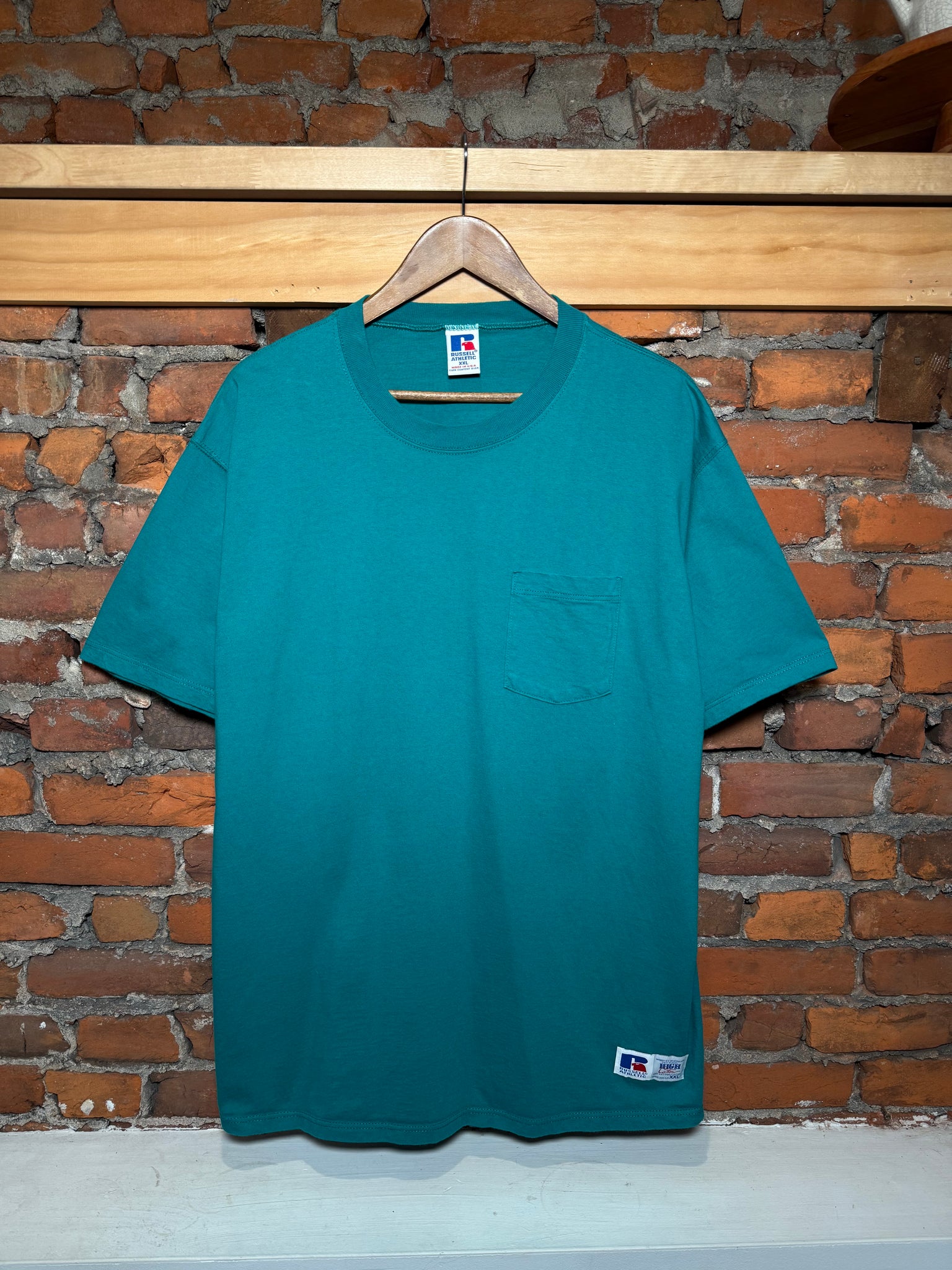 Vintage 90s Russell Athletic Teal Heavyweight Pocket Tee (XXL)