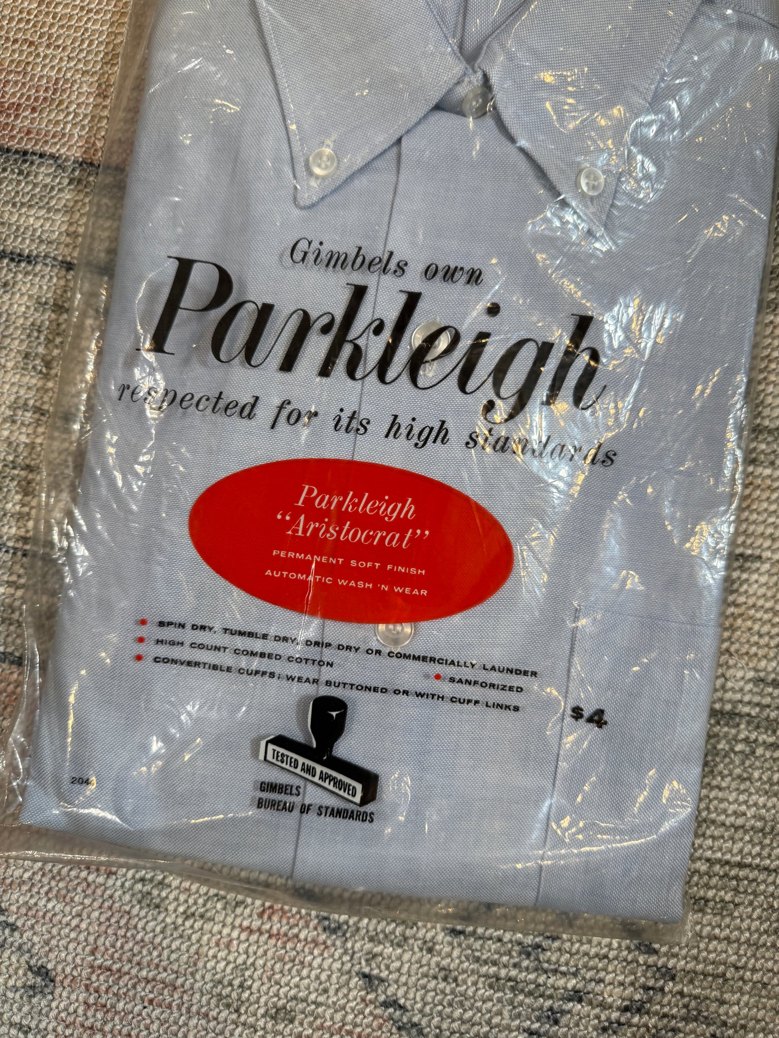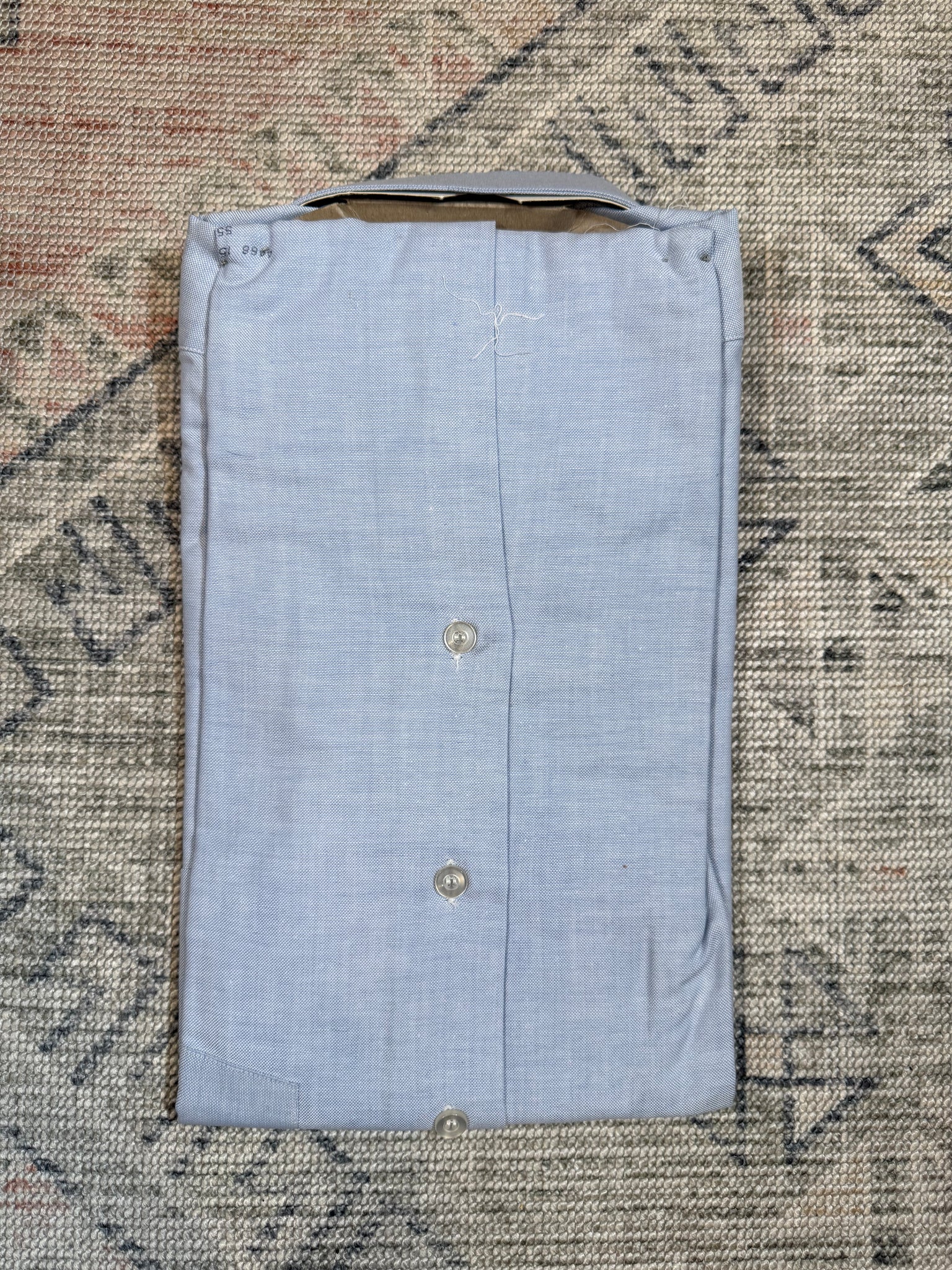 Size: never unfolded, tagged a 15 33, which seems to be around a mens medium