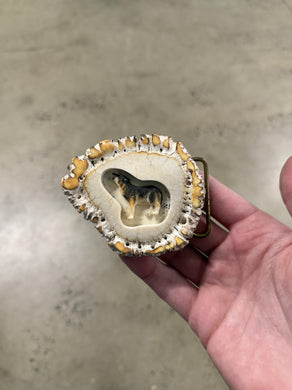 • Vintage Wooden Wolf Belt Buckle