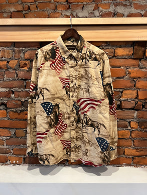 Vintage American Flag Horses Western Shirt (L)